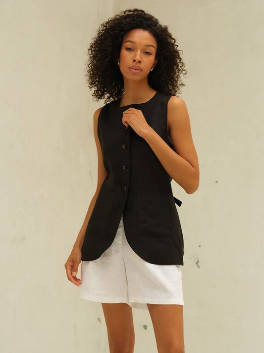 Wir verwenden ausschließlich hochwertiges, zertifiziertes Leinen, das aufgrund seiner Atmungsaktivität, Strapazierfähigkeit und natürlichen Unregelmäßigkeiten ausgewählt wurde, die jedes Stück zu einem subtilen Unikat machen. Ob figurbetonte Weste, fließender Rock oder lässig geschnittene Hose – die Silhouette ist immer bewusst gewählt, die Passform raffiniert.