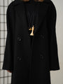 Chelies langer schwarzer Wollmantel mit Gürtel ist ein Must-have für Frauen, die Wert auf Eleganz legen. Hergestellt aus einer hochwertigen Mischung aus 90 % Wolle und 10 % Polyamid. Der Mantel hat eine ausgestellte Silhouette, einen zweireihigen Kragen und Leistentaschen und vereint so Modernität und Funktionalität.